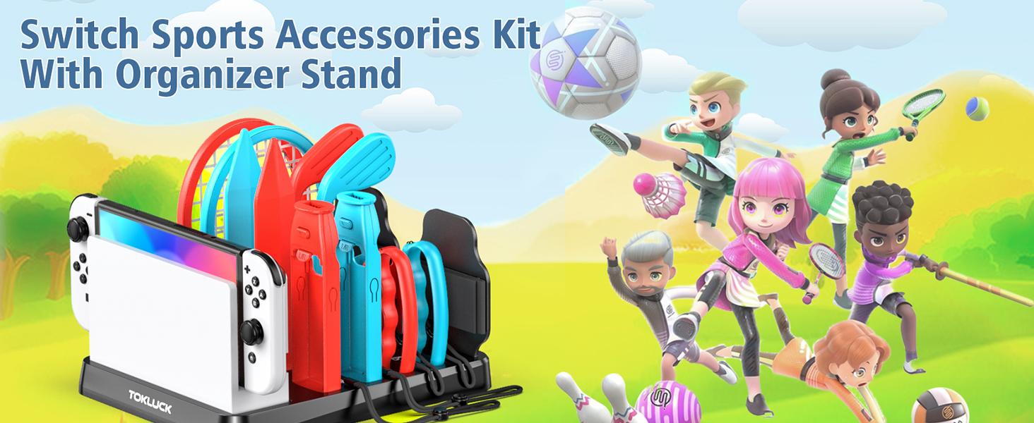 Switch Sports Accessories Bundle with Organizer Station Compatible with Nintendo Switch/ OLED Console & Joy-con, Storage and Organizer for Switch Sports Games, Family Sports Party Pack Accessories Kit