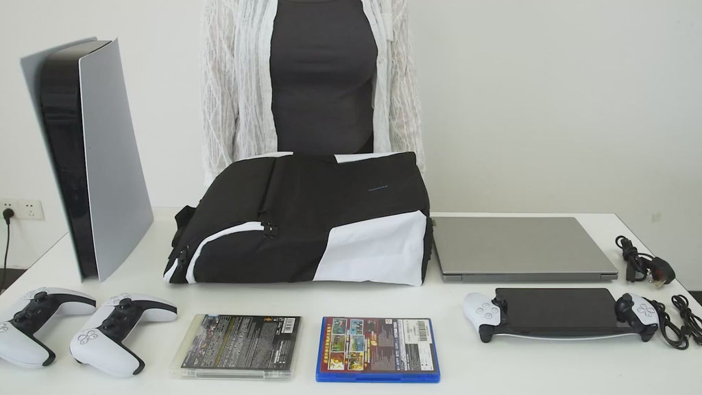 【Multifunctional Storage PS5 Backpack 】This PS5 backpack travel bag is specially designed for PS5/ PS5 Slim/ Pro Console, as well as your PS5 Controller, PS Portal, Laptop, Game Cards, and up to 3 cable pouch, along with other gaming accessories.